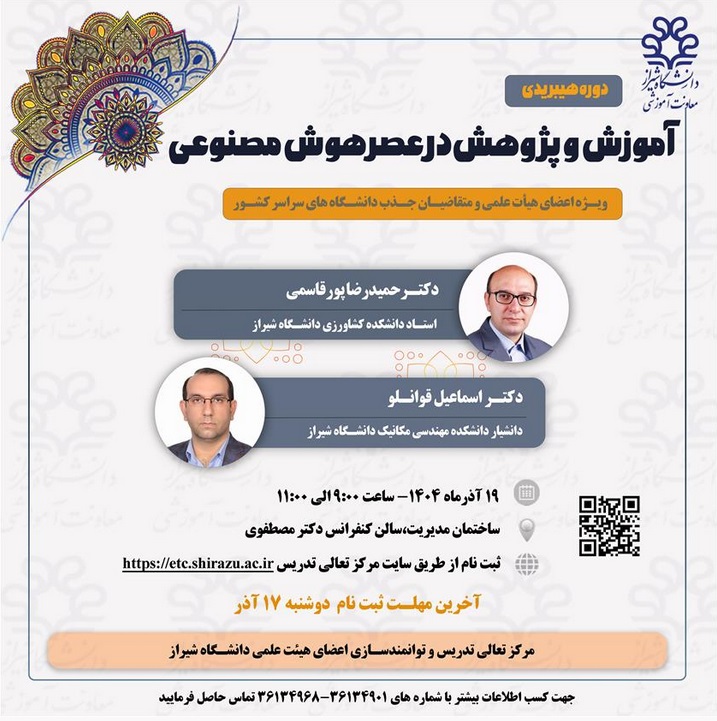 برگزاری دوره هیبریدی آموزش و پژوهش در عصر هوش مصنوعی 1404/09/12 - 12:50 - تعداد بازدید: 43 - تعداد بازدیدکننده: 43 - کد خبر : 22971 - گروه خبری : اطلاعیه ها ,آخرین اخبار - تعداد نظرات : 0